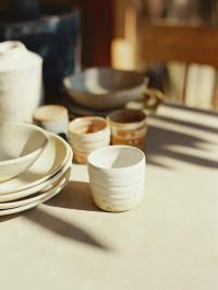 The inspiration for our handmade everyday use ceramic line comes from the daily interaction with the work. They are simple forms that allow the food we eat to have a unique canvas to be presented upon. These sometimes irregular-shaped and glazed pieces are our interpretation of a long fascinating ceramic history. Their individuality has a balance between common functional shapes and expression of the maker's hands -- that expression is our inspiration.