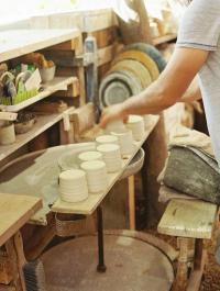 many of the early ideas for our shop came after developing special shapes of mugs, bowls, and plates for pairing with specific dishes on the Gjusta menu. And behind the creation of each piece in the Gjusta Goods collection is Ernie Lee at LA Clay Company, who works alongside a small team in East Los Angeles to create every object by hand.