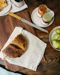 A reusable beeswax bread bag for keeping bread fresh.