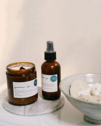 Our apothecary line is all Produced by Among the Flowers, a team of 15 women hand making their line of natural beauty products in the foothills of the Sierra Nevada Mountains.