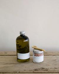 A duo of our most popular pantry items, both made next door in our bakery, and paired with a handy wooden salt scoop for serving — in a sturdy paper box for easy gifting.
