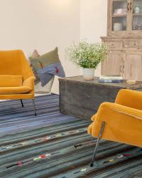 Working with our friend Engin in Istanbul, we've given new life to vintage Turkish kilims (flat woven cloths) dating between 65 and 100 years old. These vintage pieces have been cut, naturally dyed, and hand-stitched to create beautiful new custom rugs by women in Turkey.