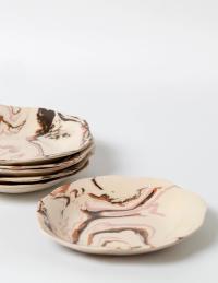 Inspired by Greek and Italian marble, these ceramic marbleized plates are the latest collection created by Totem Home. All made by hand in a small atelier in Portugal. Each piece is unique in its own beauty and handmade quality.